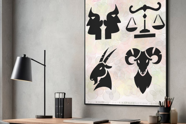 Motifs « Zodiaque » : symboles astrologiques stylisés, silhouettes graphiques et lignes épurées pour un rendu moderne et intemporel.